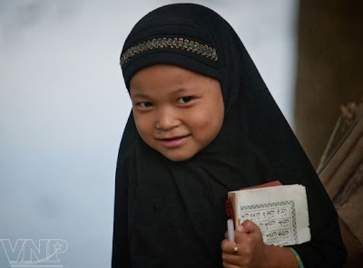 MỘT SỐ HÌNH ẢNH DÂN TỘC CHĂM ISLAM TẠI VÙNG SÔNG NƯỚC "BÚNG BÌNH THIÊN" Em bé trong trang phục truyền thống Ílam cắp sách đến trường Quán hàng trái cây trên đường Trẻ em vô tư vui đùa dưới những ngôi nhà sàn truyền thống Cuộc sống vui tươi của các em bé Chăm Ngôi Thánh đường là trung tâm hành đạo của những người dân tộc Chăm trong vùng Lớp học thiên kinh Qur'an cho các cháu nữ Các bé siêng năng học tập Sau giờ tan học Các em vui đùa bên sông nước Sinh hoạt của các em bé chăm